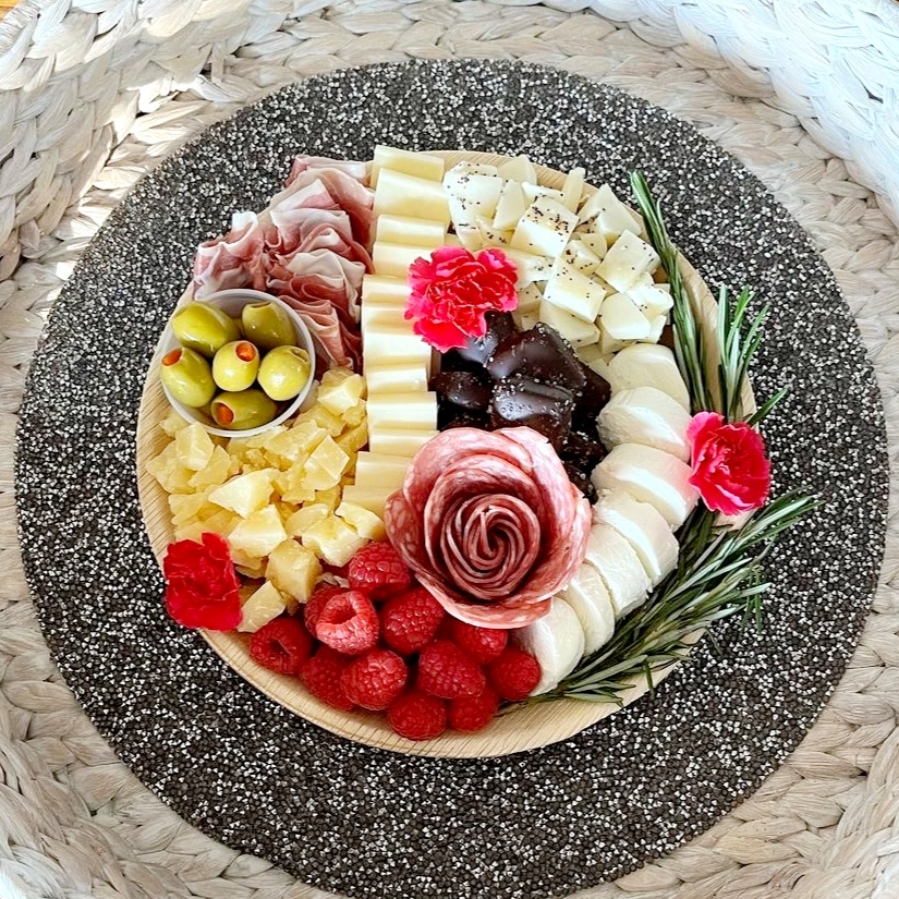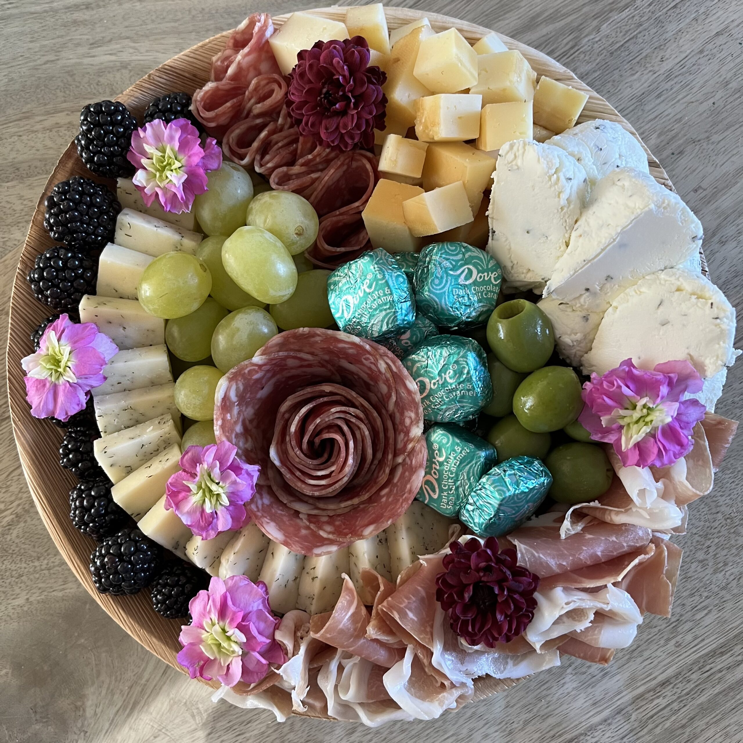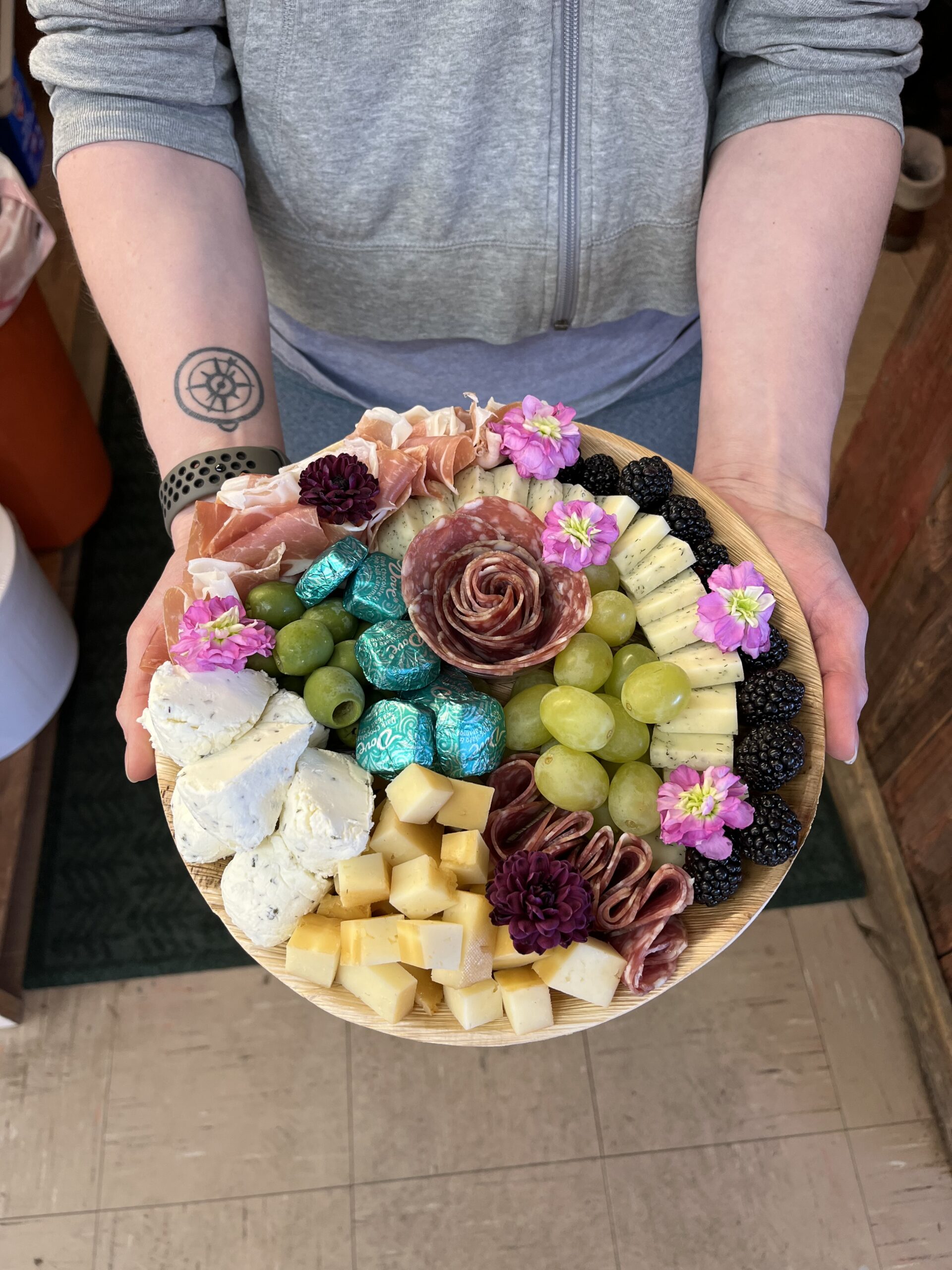 ALL boards are assembled with an assortment of cheeses, meats, fruits, vegetables, and accoutrements to make delicious and fun pairings.